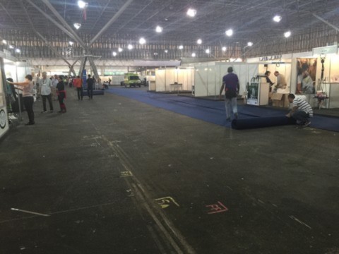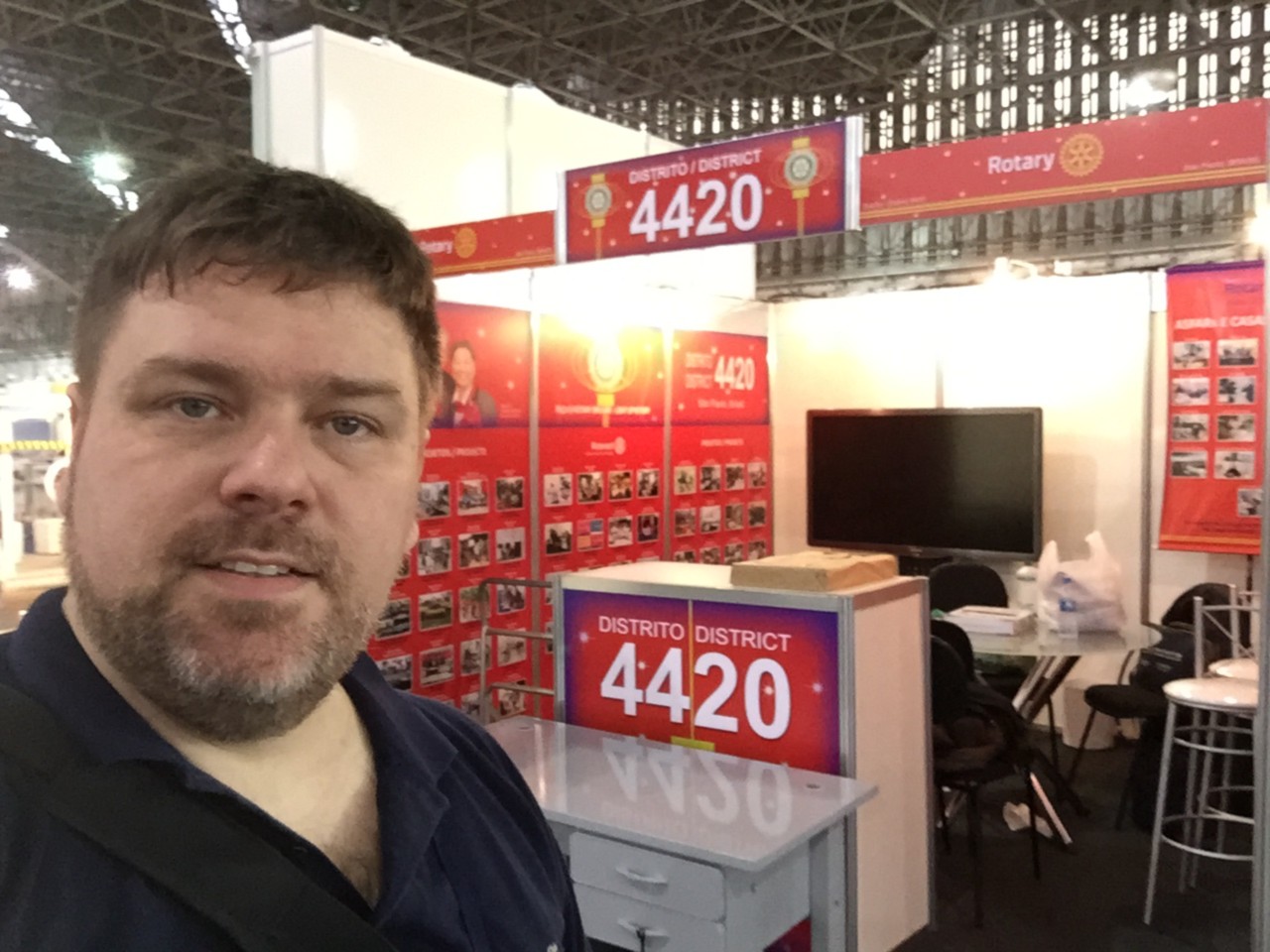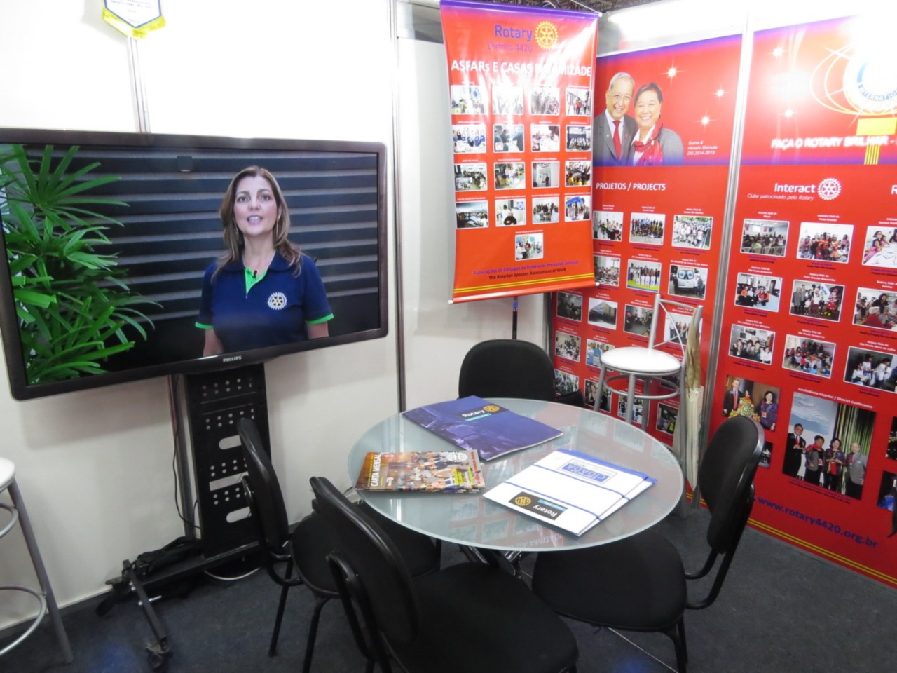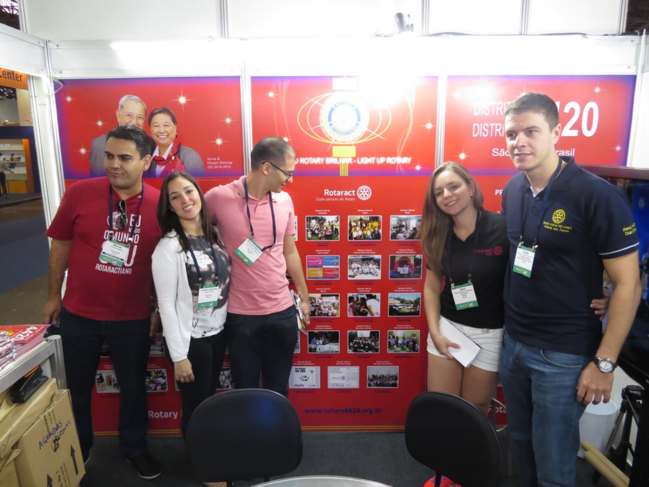 Nas fotos imagens da preparação final para o evento, e a equipe de montagem do stand do Distrito 4420.