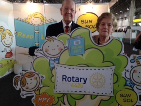 Foi um sucesso o estande dos 3 projetos distritais ? HPV, LER e Sol amigo da Infância, montado na Convenção de São Paulo. Recebeu a visita de rotarianos de todo o mundo, inclusive a do Presidente Eleito do Rotary International para 2015-16 Ravi Ravindran.