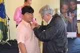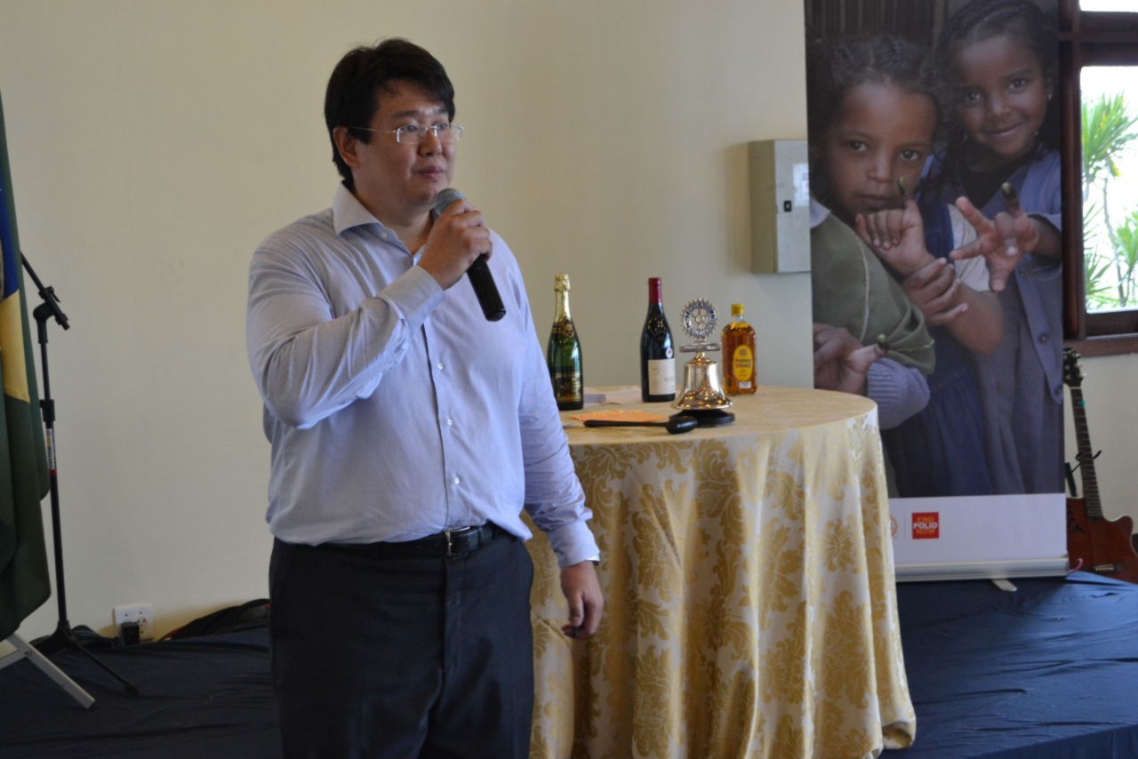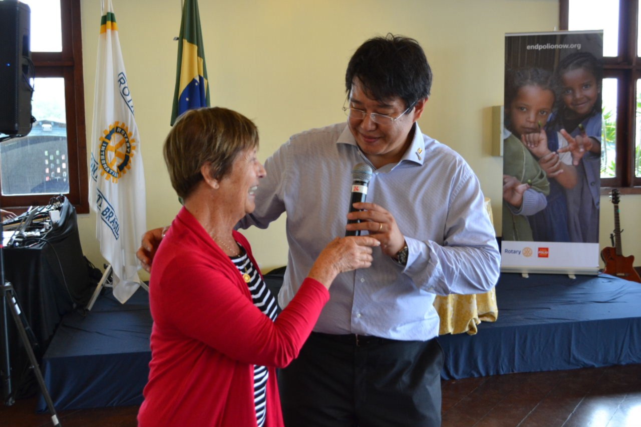 Sentindo-se muito honrado em dividir a tarde com companheiros homenageados, Cláudio Hiroshi Takata, governador indicado 2017-2018, também fez seus agradecimentos e apresentou um projeto vitorioso, apoiado pelo RCSP Aeroporto, denominado Projeto Sol, do Centro de Orientação e Educação à Juventude. Takata finalizou, agradecendo aos companheiros que contribuíram para que mais um projeto pudesse beneficiar mais de 200 pessoas, entre crianças e jovens, graças à solidariedade, generosidade e comprometimento de cada um, que através destes gestos conseguem realizar muitos sonhos, fruto do trabalho desenvolvido através dos clubes em seus projetos.