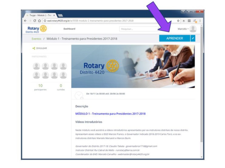 Disponibilizamos também um TUTORIAL com um passo a passo do curso: www.rotary4420.org.br/tutorialead