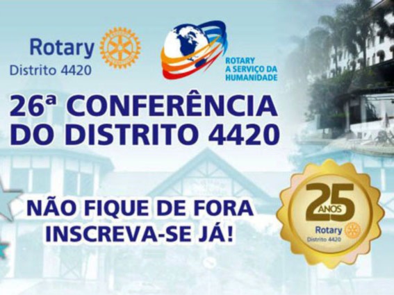 Você tem pelo menos dois bons motivos para estar conosco: o primeiro é a comemoração do Centenário da Fundação Rotária, e o segundo é o aniversário de 25 anos de nosso Distrito. Quer mais? Então não perca, pois teremos muito a comemorar.
