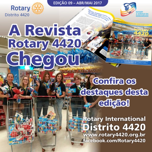 Já está disponível a Revista Rotary 4420 ? Edição 09 ? MAR/ABR 2017 (Comunicado Mensal do Governador do Distrito 4420 do Rotary International - Ano Rotário 2016-2017). O material é visualizado por meio do aplicativo ISSUU para tablets, smartphones e desktops, compatível com todos os navegadores web. Obrigado pela leitura!