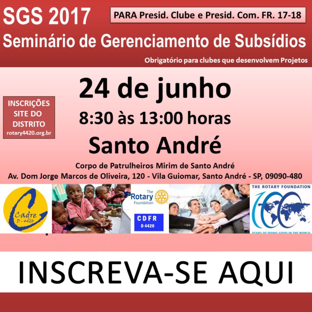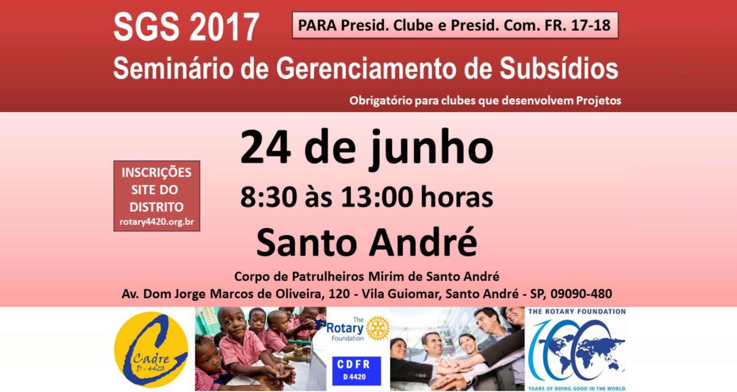 Inscreva-se no Seminário de Gerenciamento de Subsídios. Evento obrigatório para presidentes de clubes e presidentes de comissão de Fundação Rotária dos clubes do Distrito.