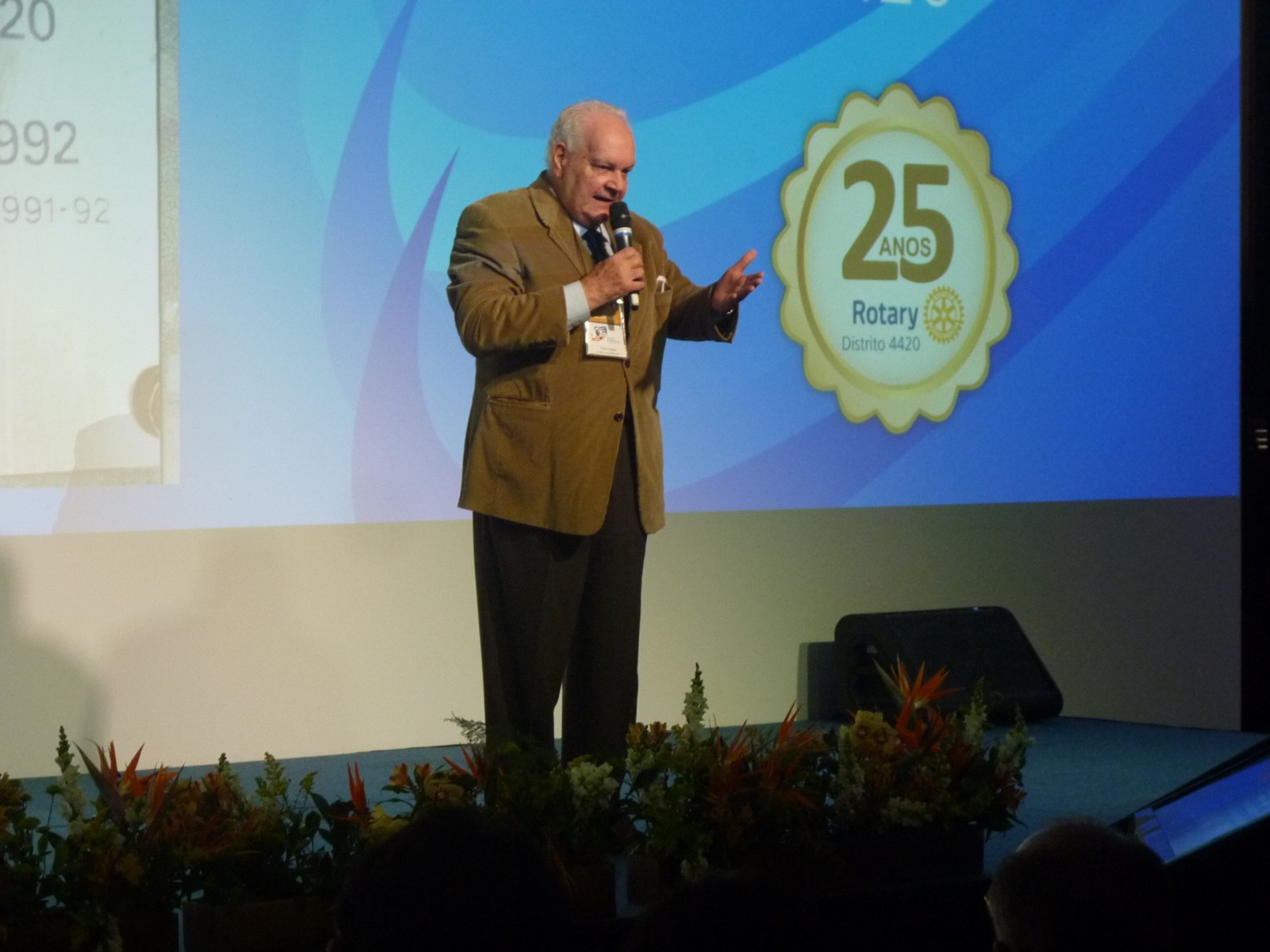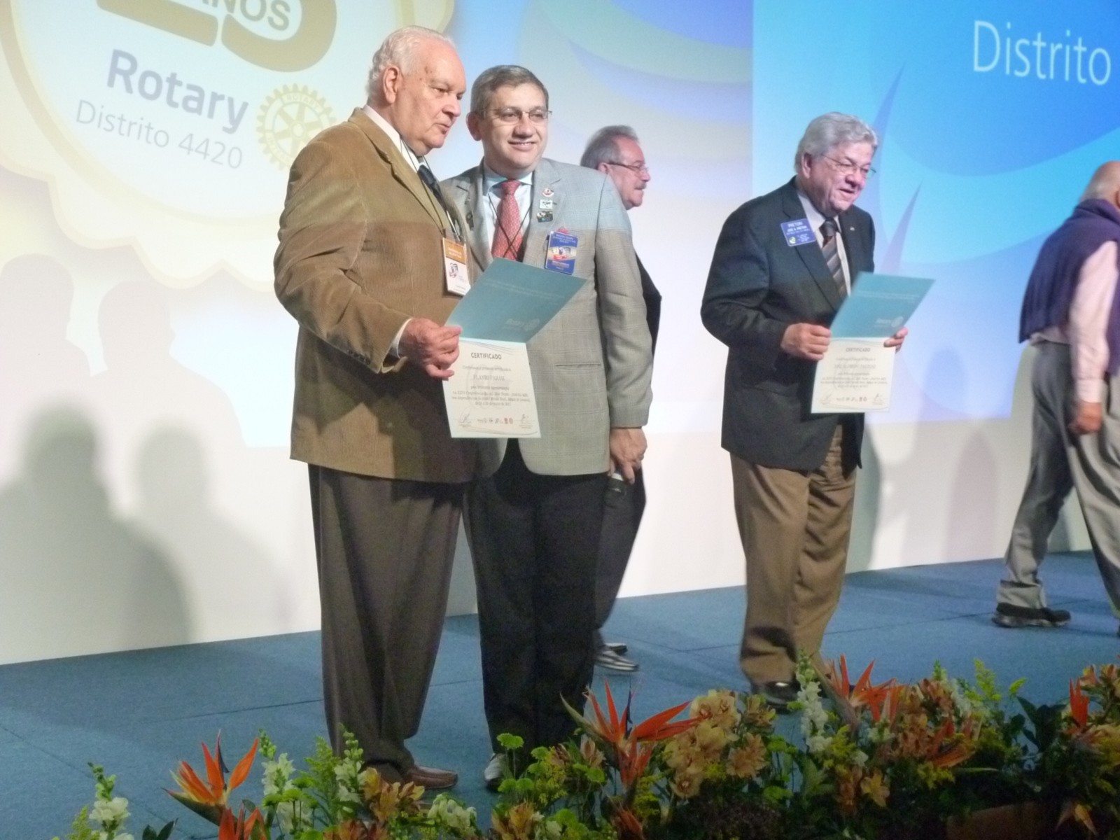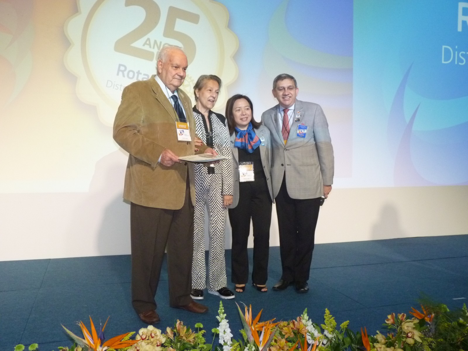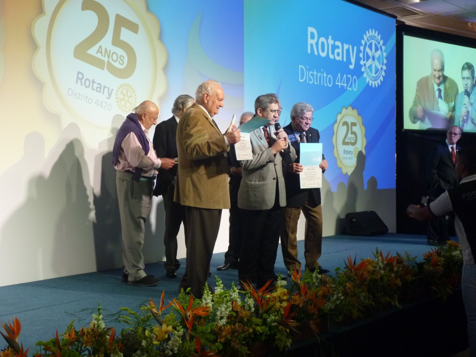 Em homenagem aos 25 anos do distrito, José Alfredo Pretoni deixou uma mensagem aos rotarianos. Em seguida, Flavio Farah (primeiro governador do distrito 4420) fez um resumo de sua trajetória no Rotary.