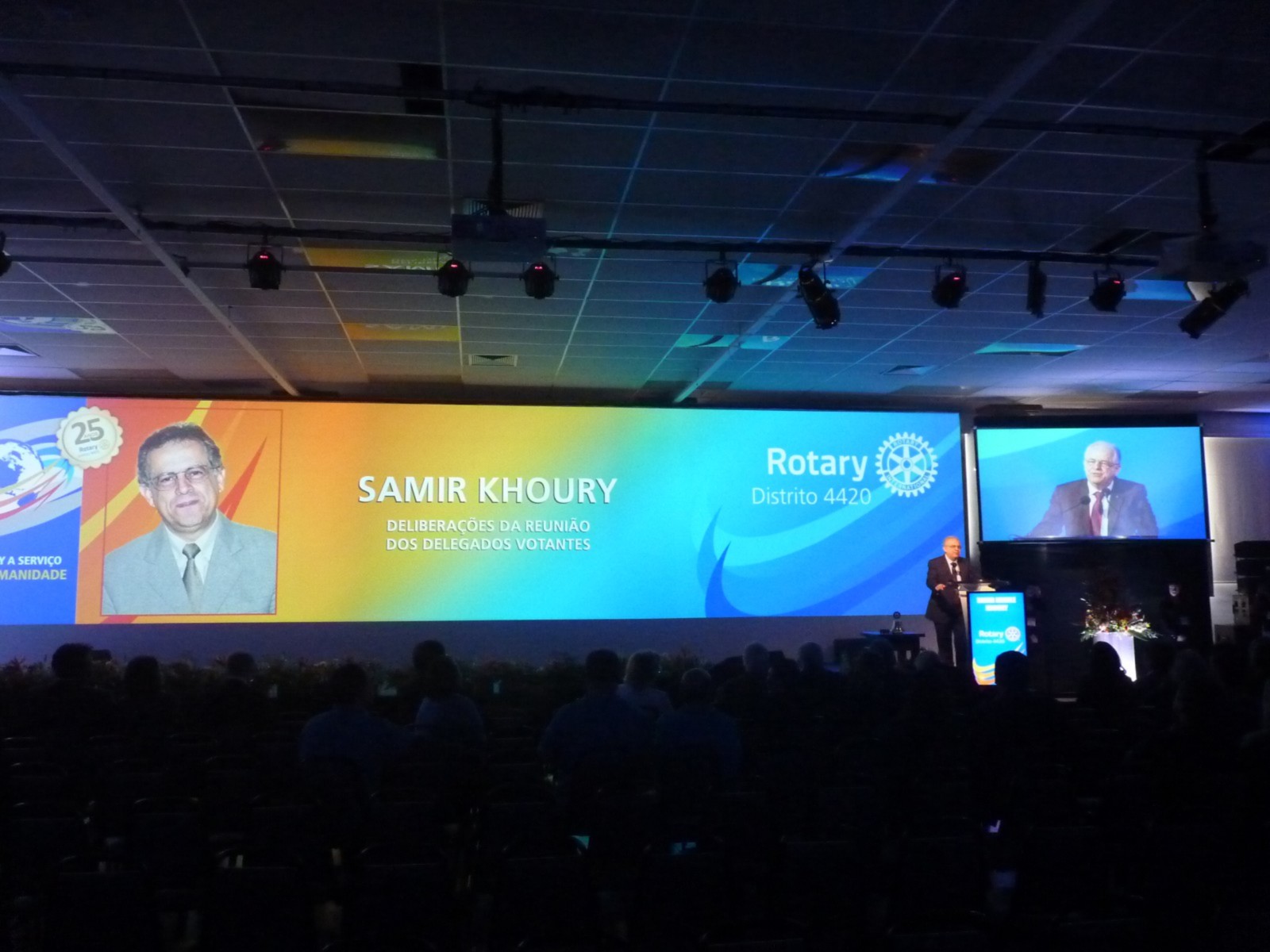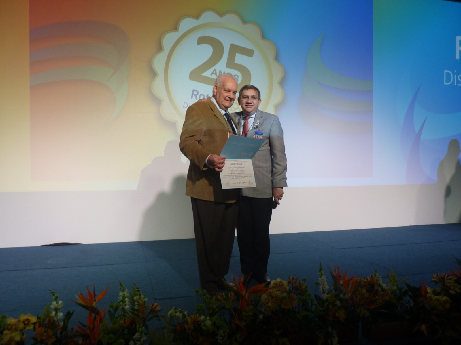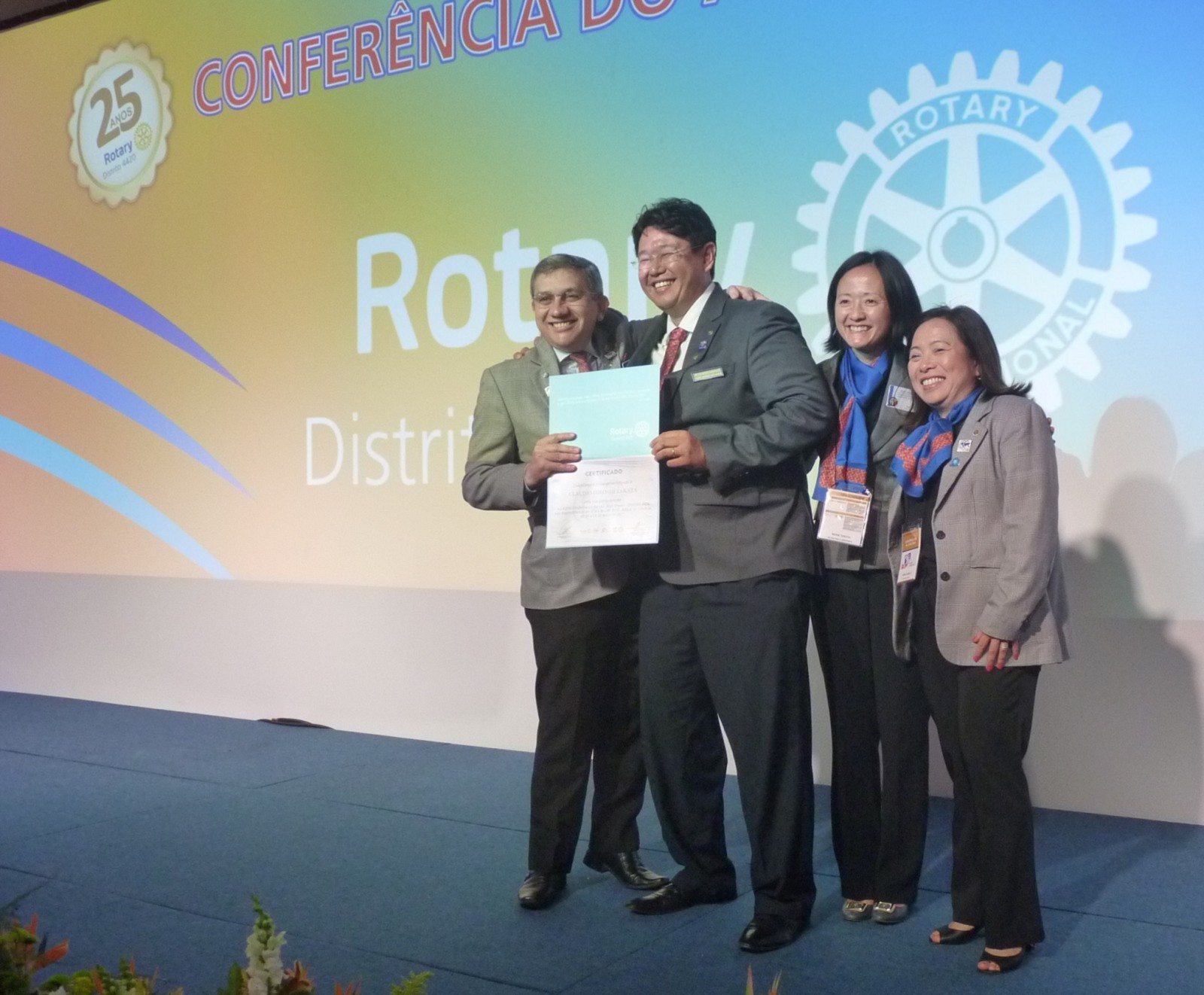 Em homenagem aos 25 anos do distrito, José Alfredo Pretoni deixou uma mensagem aos rotarianos. Em seguida, Flavio Farah (primeiro governador do distrito 4420) fez um resumo de sua trajetória no Rotary.