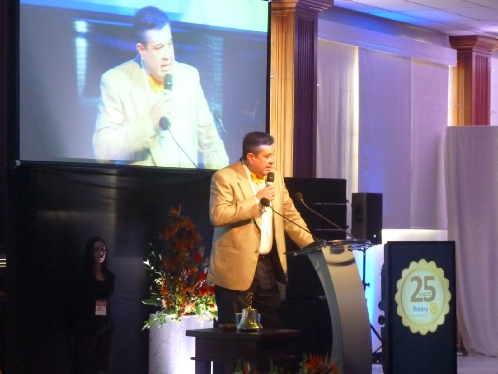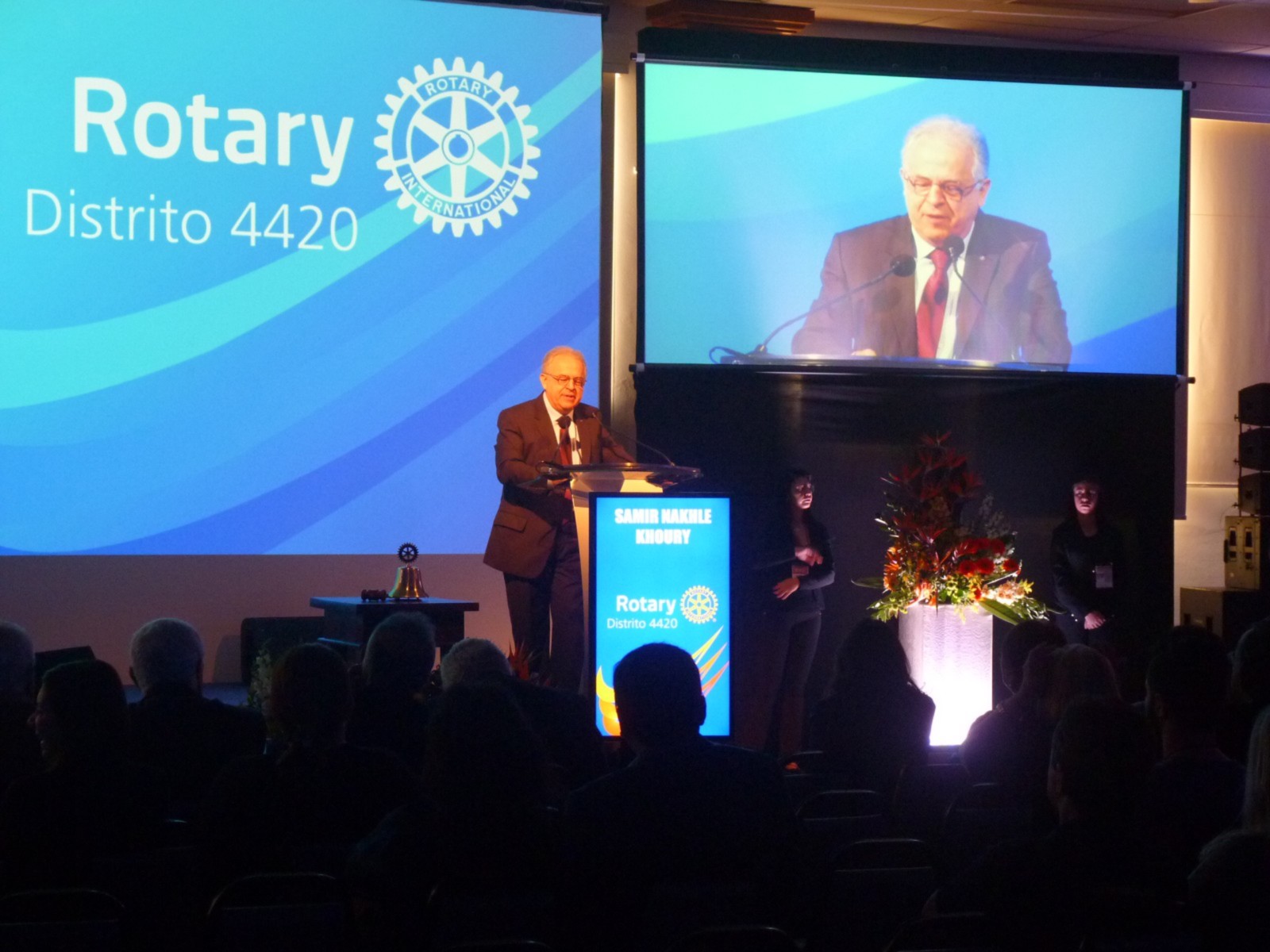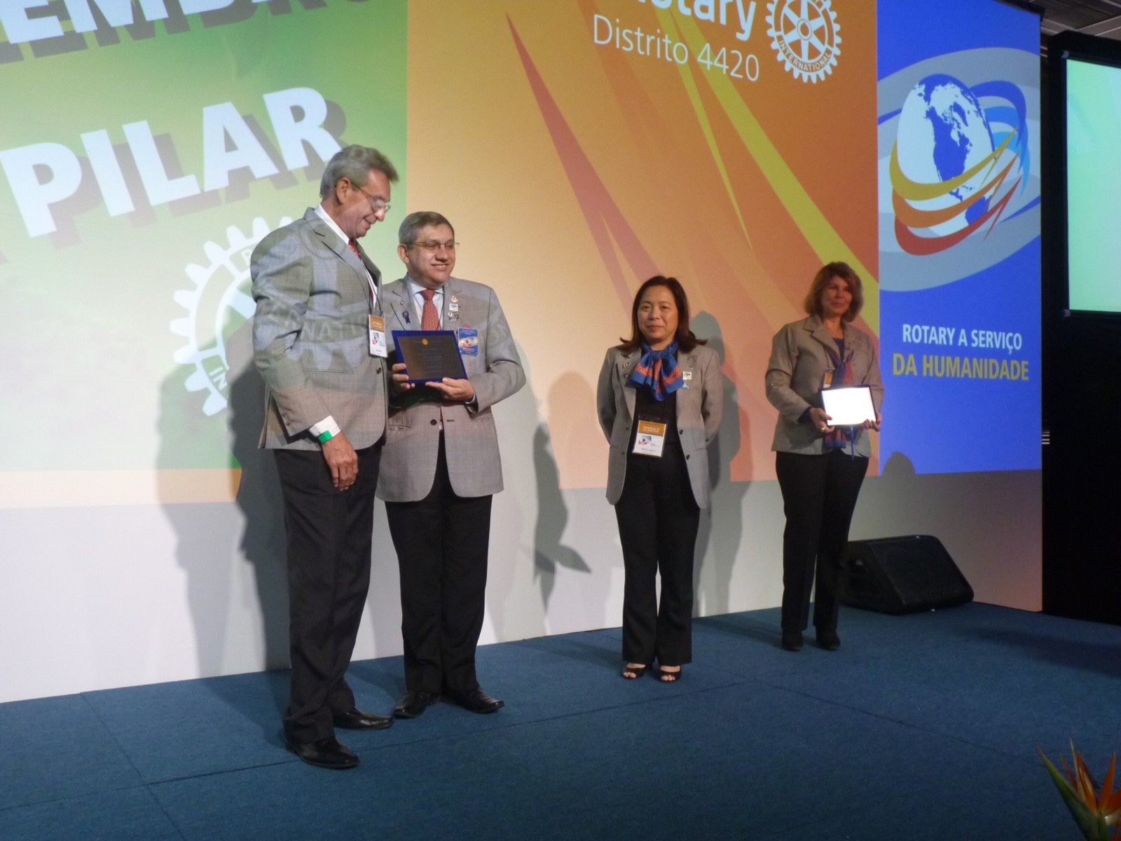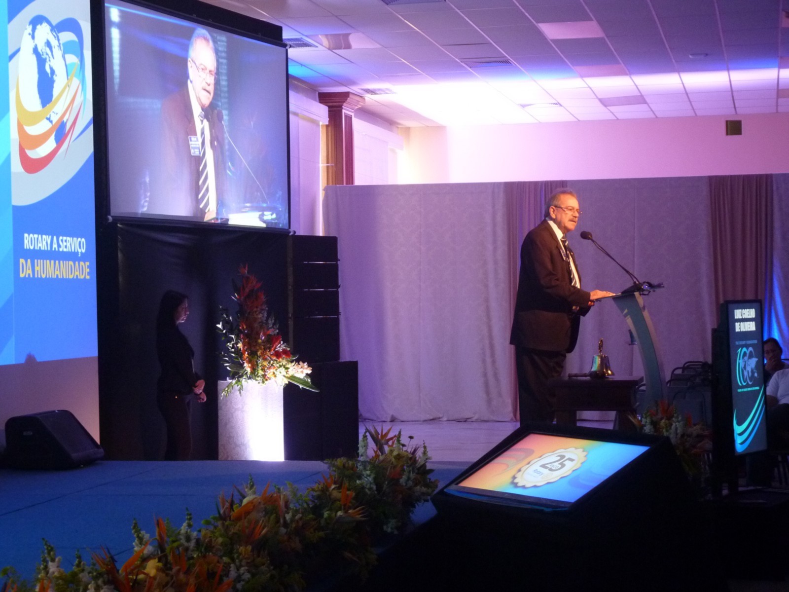 Em homenagem aos 25 anos do distrito, José Alfredo Pretoni deixou uma mensagem aos rotarianos. Em seguida, Flavio Farah (primeiro governador do distrito 4420) fez um resumo de sua trajetória no Rotary.