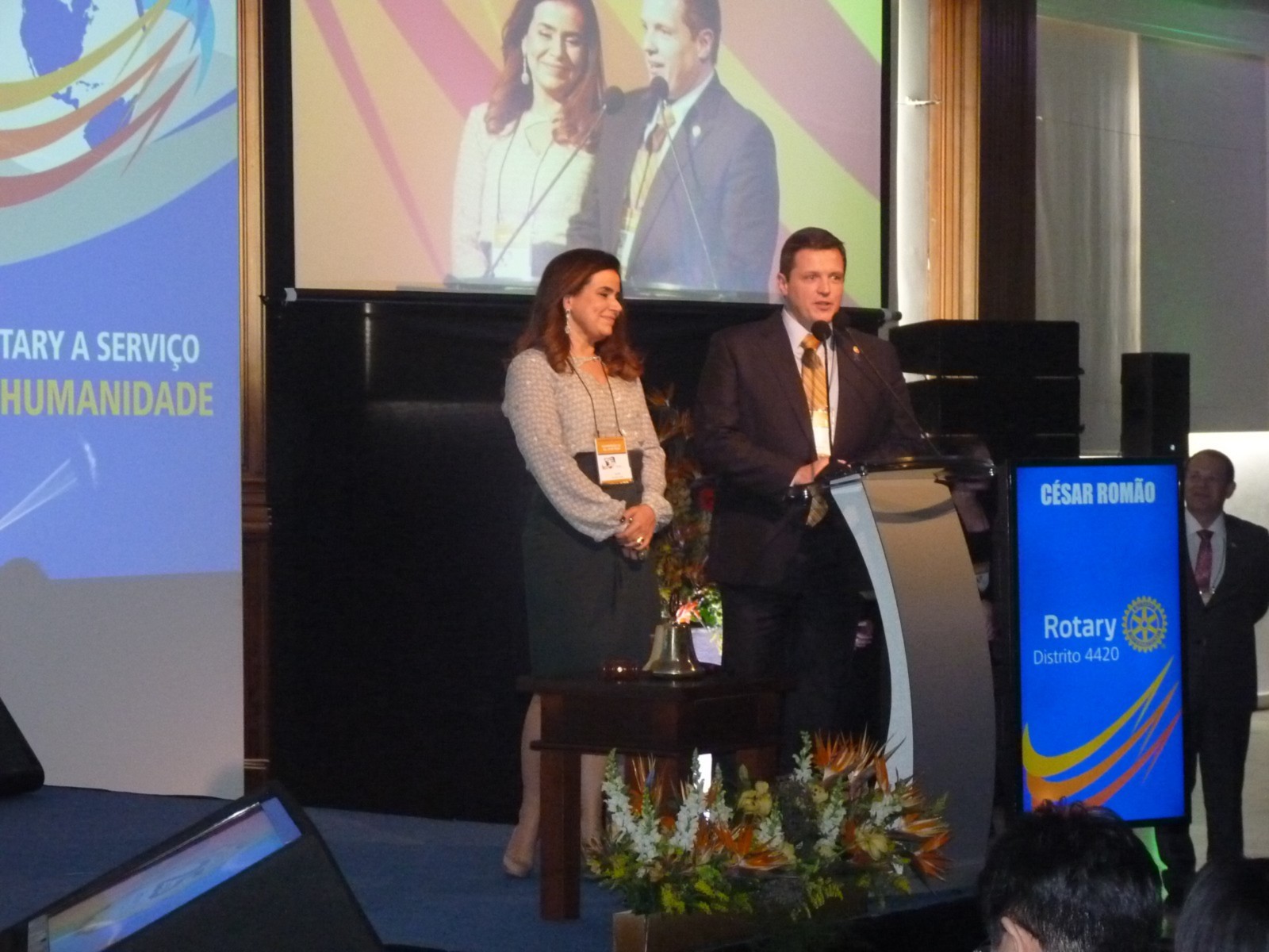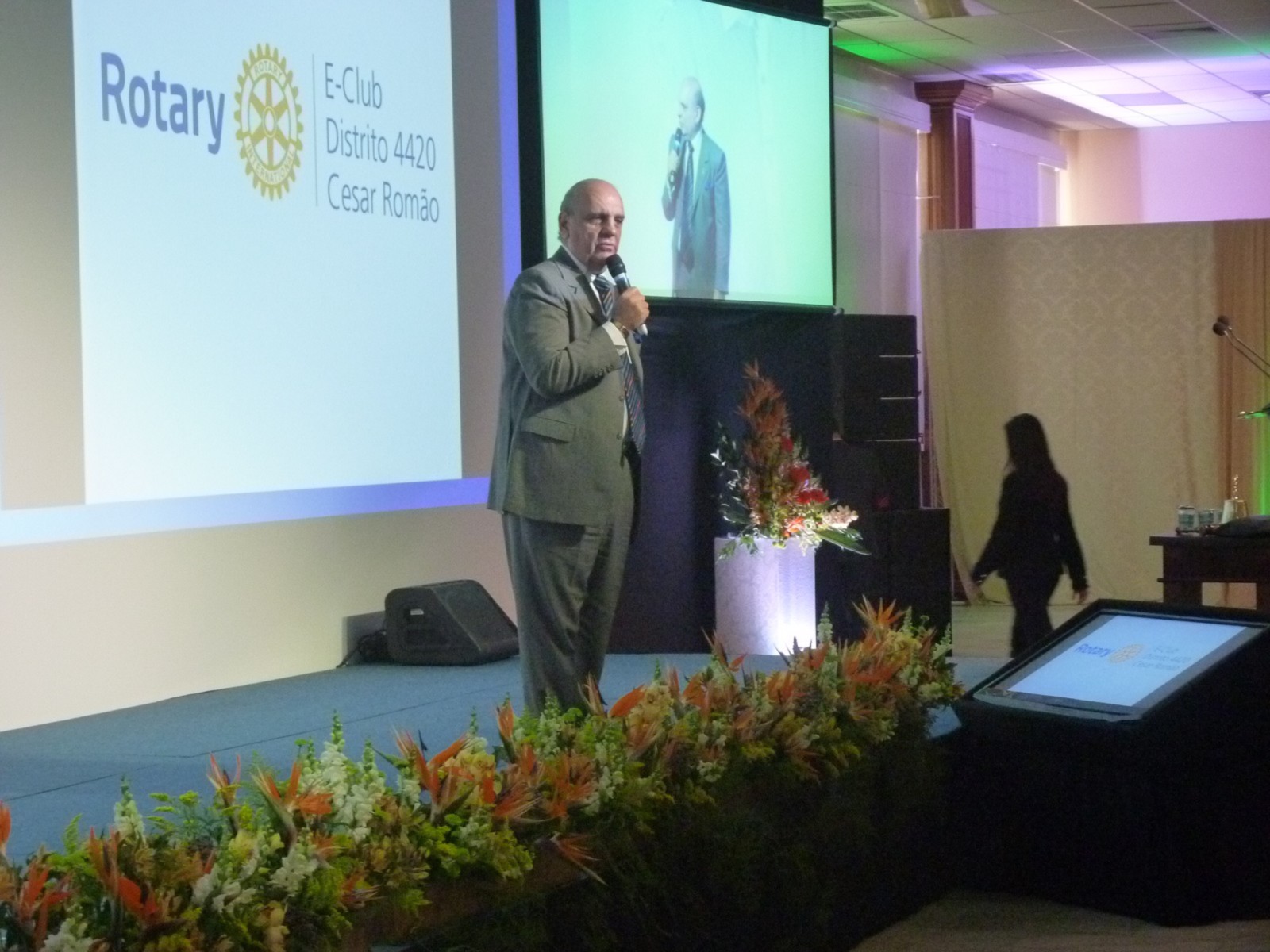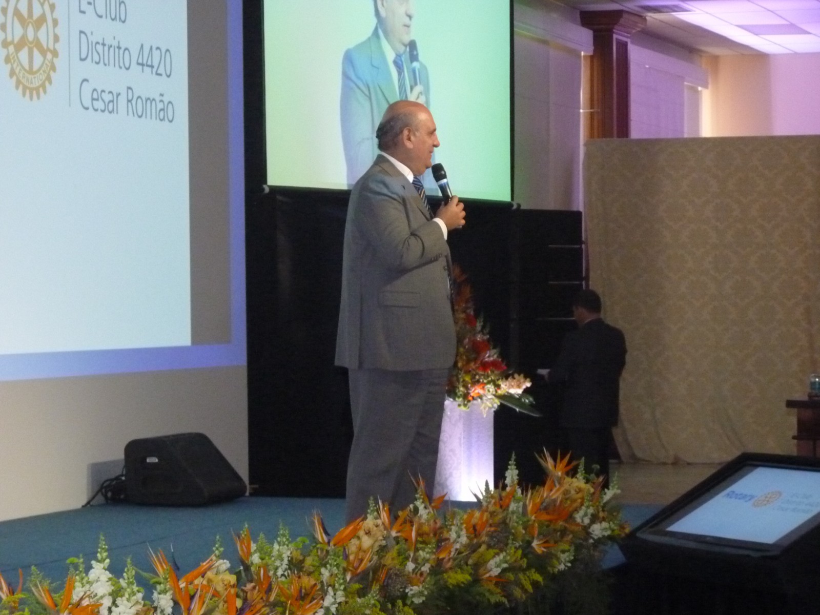 O primeiro palestrante do dia, César Romão, tido como um dos mais importantes escritores, palestrantes e consultores motivacionais do Brasil, falou sobre Como se tornar um rotariano exponencial.