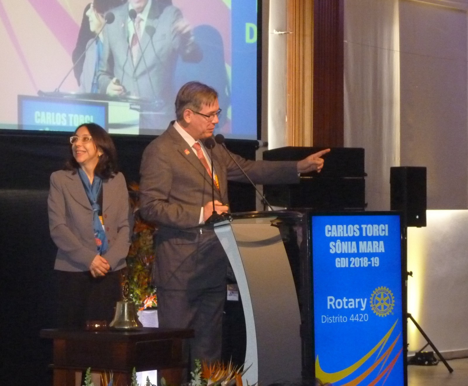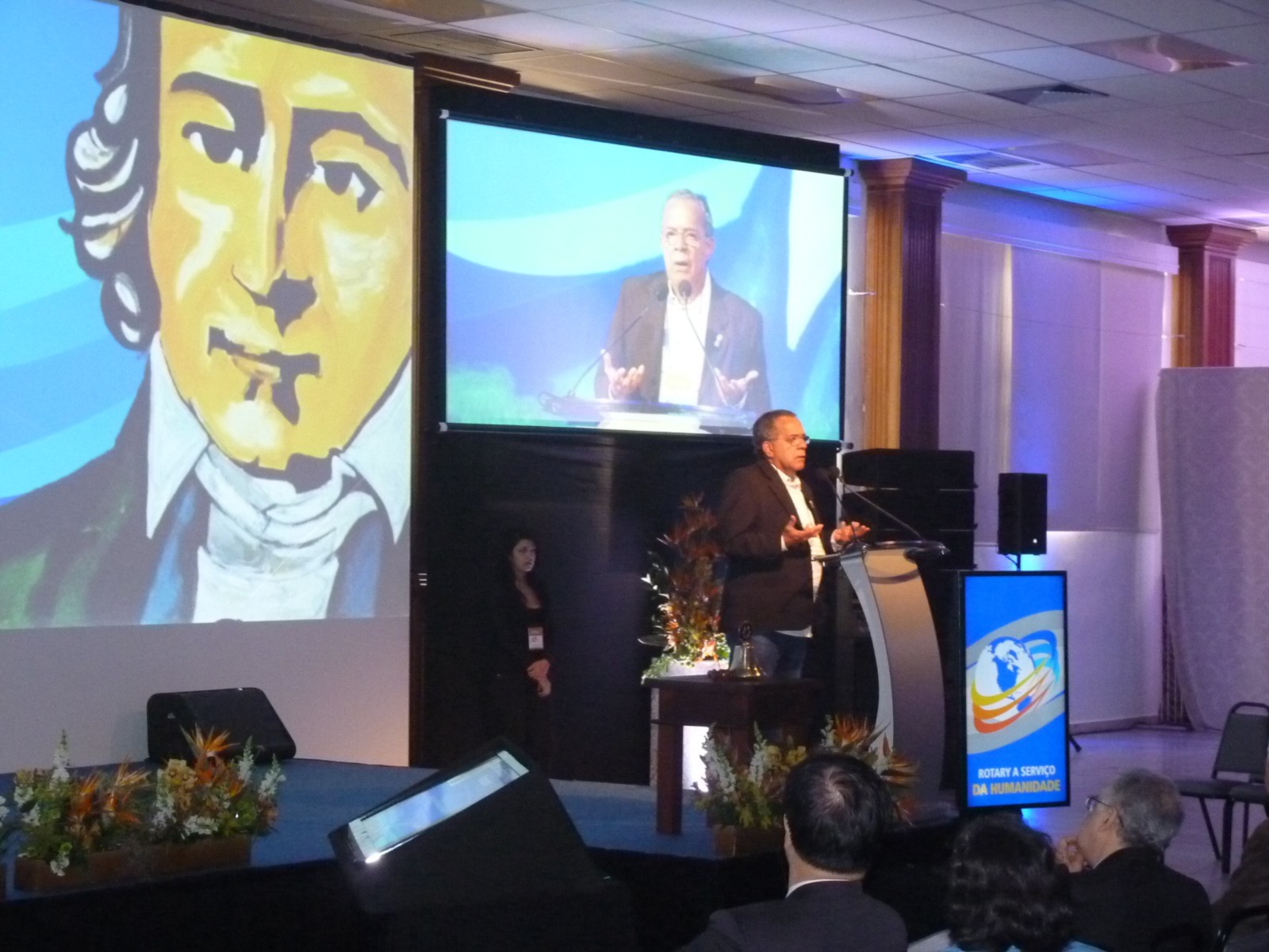 Uma homenagem a José Bonifácio abriu os trabalhos da 2º Sessão Plenária realizada na manhã de sábado (27), na Conferência Distrital. Em seguida, Samir Koury falou sobre as Deliberações da reunião dos delegados votantes. Foram definidas novas ações para votos, dentre elas, diminuição do prazo para a votação dos novos presidentes e a oxigenação do Rotary Kids.