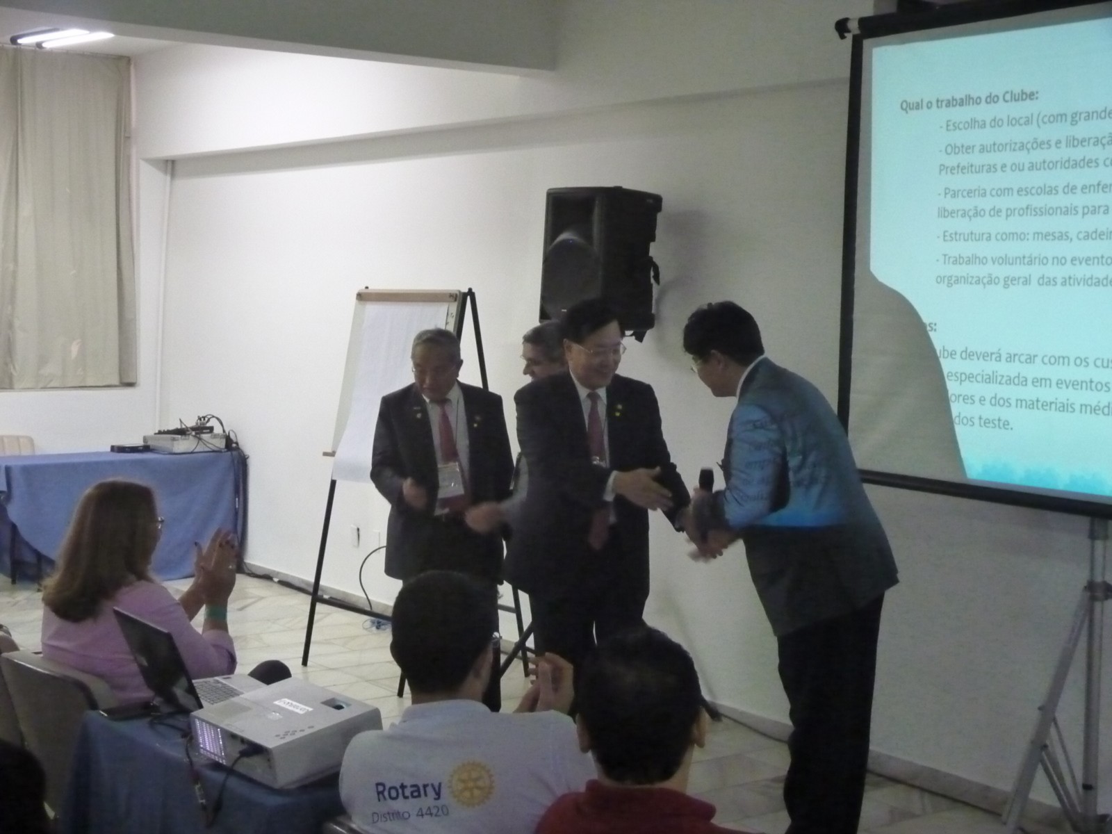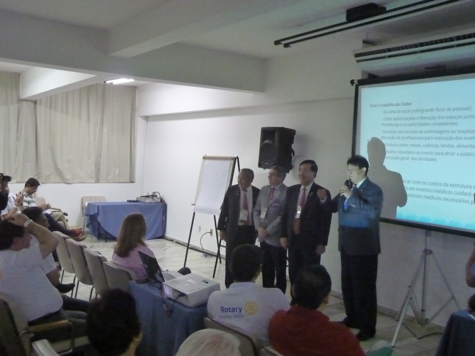 Foi apresentado um panorama sobre as Doações Extraordinárias à Fundação Rotária. A apresentação foi ministrada por Hiroshi Shimuta (governador 2014-15). Ele aproveitou a oportunidade para falar sobre sua carreira profissional, história de vida e superação pessoal.