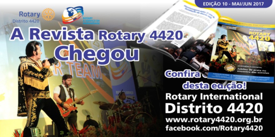 Já está disponível a Revista Rotary 4420 ? Edição 10 ? 2016-17 (Comunicado Mensal do Governador do Distrito 4420 do Rotary International - Ano Rotário 2016-2017), com a cobertura da Conferência DIstrital. O material é visualizado por meio do aplicativo ISSUU para tablets, smartphones e desktops, compatível com todos os navegadores web. Obrigado pela leitura!